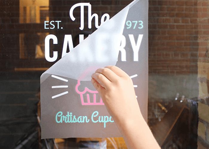 decorazione e applicazione di vetrofanie, loghi e scritte.