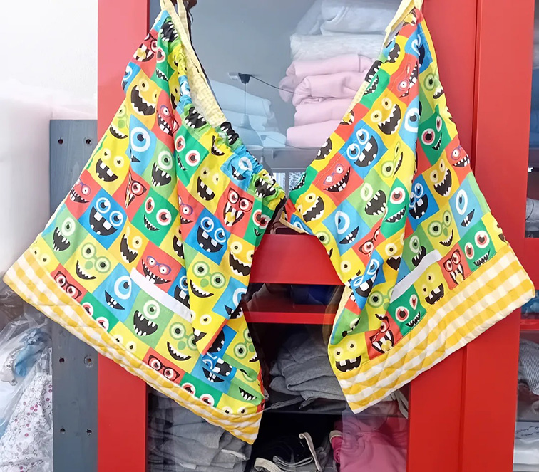 e sacchetto porta indumenti - varie grafiche disponibili in negozio, personalizzabile nome con ricamo prodotto artigianale pezzi unici